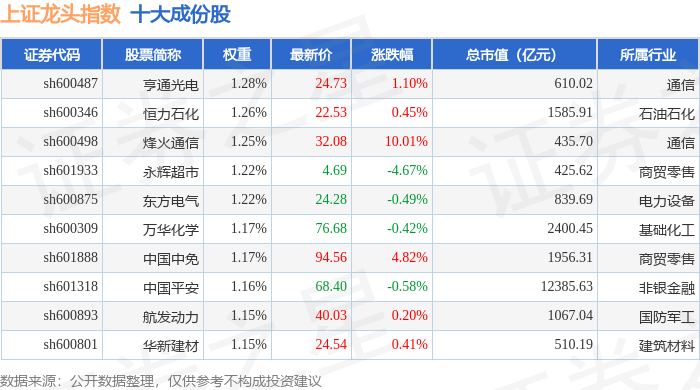 上证龙头(000065)指数十大成份股详情如下: