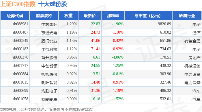 上证F300(000099)指数十大成份股详情如下: