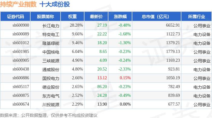 持续产业(000114)指数十大成份股详情如下: