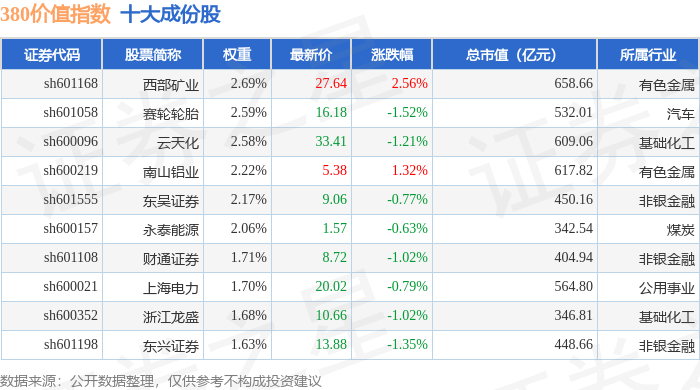 资金流向方面,380价值(000118)指数成份股当日主力资金净流出合计9.36亿元,游资资金净流入合计1.91亿元,散户资金净流入合计7.44亿元。成份股资金流向详情见下表: