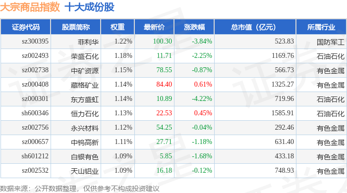 大宗商品(000979)指数十大成份股详情如下: