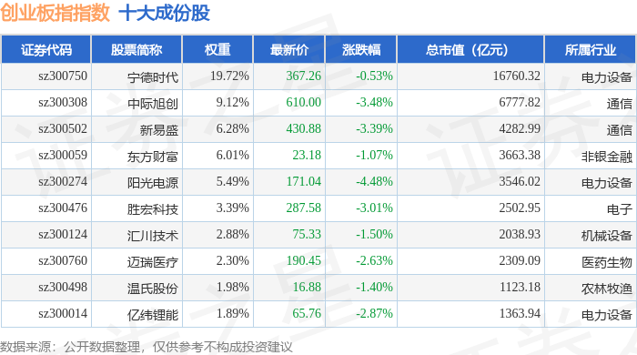 资金流向方面,创业板指(399006)指数成份股当日主力资金净流出合计61.75亿元,游资资金净流入合计21.85亿元,散户资金净流入合计39.9亿元。成份股资金流向详情见下表: