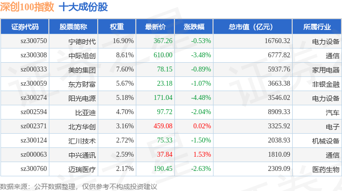 深创100(399088)指数十大成份股详情如下: