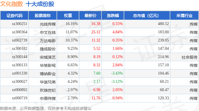 资金流向方面,文化指数(399248)成份股当日主力资金净流入合计1.53亿元,游资资金净流出合计1.09亿元,散户资金净流出合计4453.3万元。成份股资金流向详情见下表: