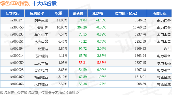 资金流向方面,绿色低碳(399258)指数成份股当日主力资金净流出合计73.17亿元,游资资金净流入合计20.13亿元,散户资金净流入合计53.04亿元。成份股资金流向详情见下表:
