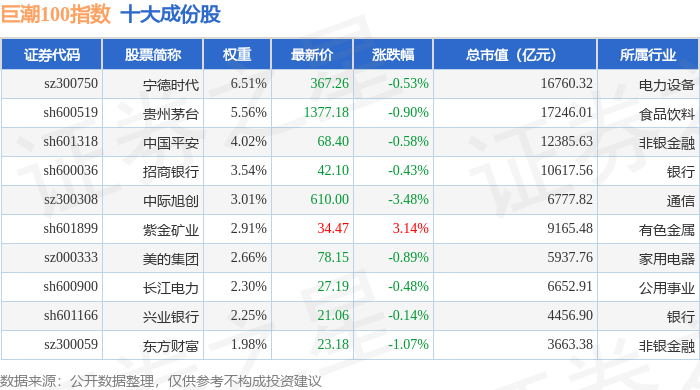 巨潮100(399313)指数十大成份股详情如下: