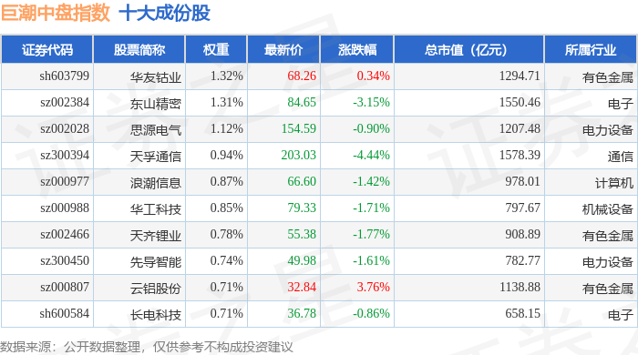 证券之星消息,12月31日,巨潮中盘(399315)指数报收于4759.36点,跌0.27%,成交2709.99亿元,换手率1.42%。当日该指数成份股中,上涨的有107家,国博电子以12.05%的涨幅领涨,下跌的有185家,北京君正以5.65%的跌幅领跌。