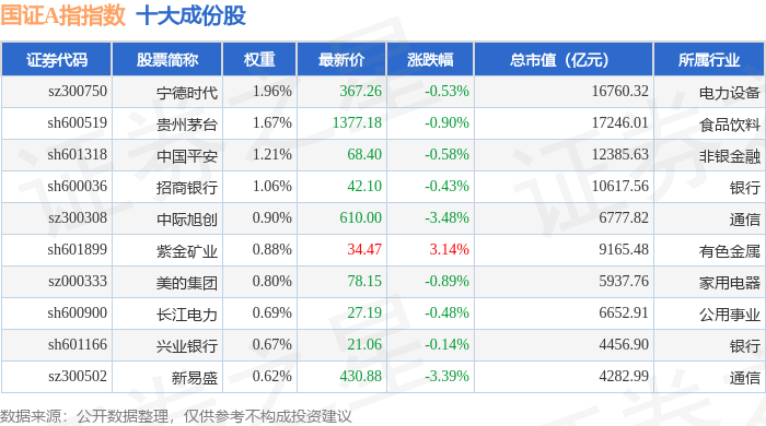 国证A指(399317)指数十大成份股详情如下: