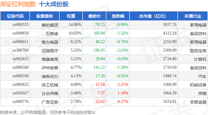 深证红利(399324)指数十大成份股详情如下: