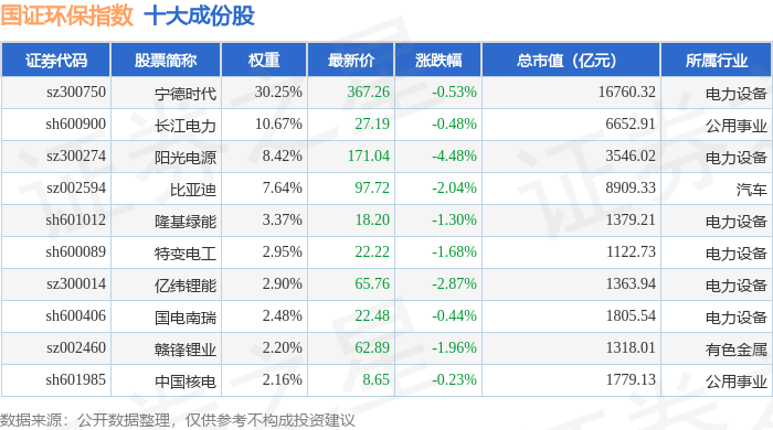 国证环保(399358)指数十大成份股详情如下: