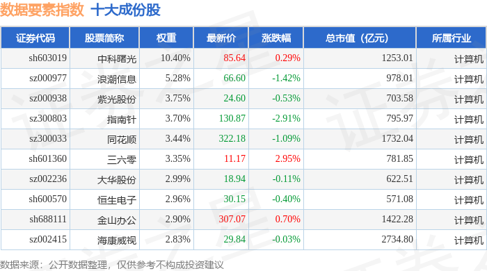 数据要素(399418)指数十大成份股详情如下: