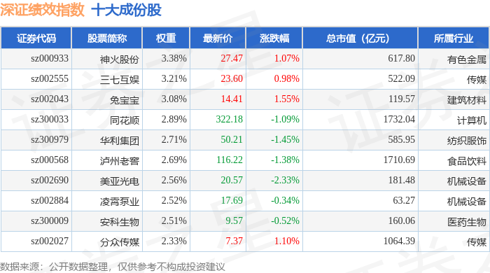 深证绩效(399655)指数十大成份股详情如下: