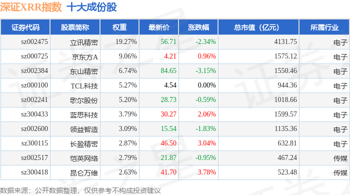 深证XRR(470046)指数十大成份股详情如下: