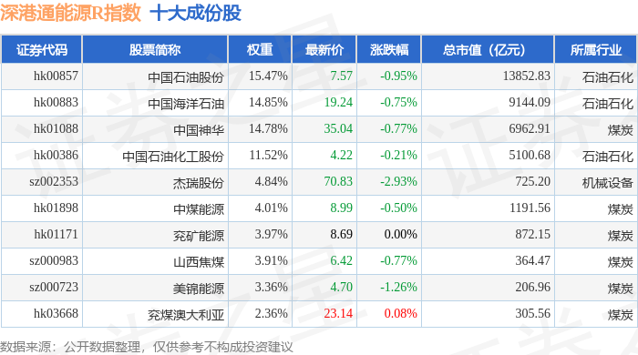 深港通能源R(483013)指数十大成份股详情如下: