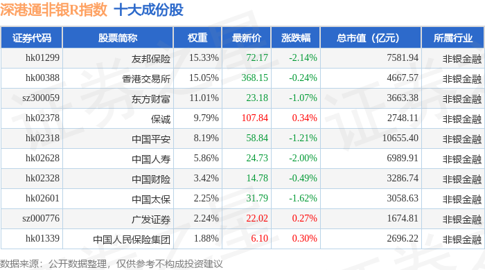 深港通非银R(483053)指数十大成份股详情如下:
