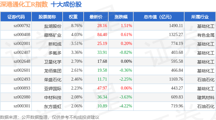 深港通化工R(483063)指数十大成份股详情如下: