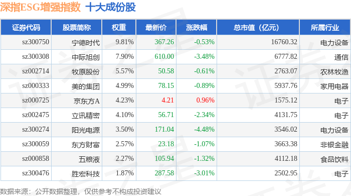 深指ESG增强(970032)指数十大成份股详情如下: