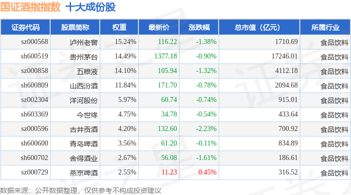 国证酒指(980049)指数十大成份股详情如下: