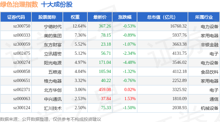 绿色治理(980058)指数十大成份股详情如下: