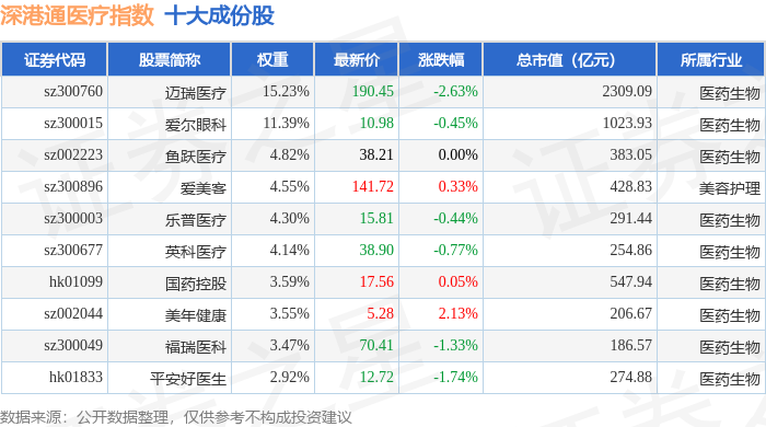 近10日内深港通医疗(983035)指数成份股做了调整,新纳入了2只股票。