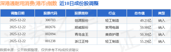 近10日内深港通耐用消费(港币)(983050)指数成份股做了调整,新纳入了4只股票。