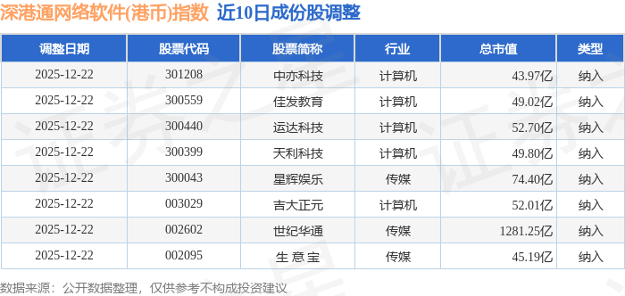近10日内深港通网络软件(港币)(983048)指数成份股做了调整,新纳入了8只股票。