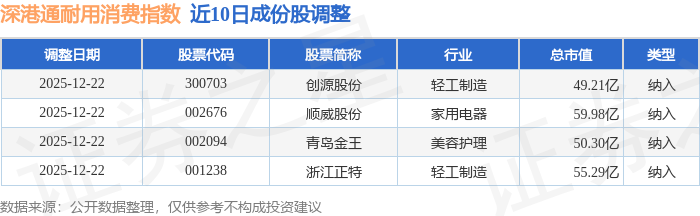 近10日内深港通耐用消费(983049)指数成份股做了调整,新纳入了4只股票。