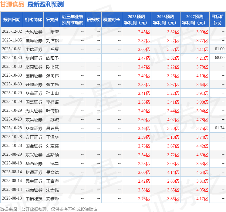 公司经过经营调整期后,在产品、渠道、成本、费用投放方面均有改善。2025Q3公司净利率已出现环比提升,叠加公司逐步进入春节旺季备货,2026上半年公司有望实现利润亮眼增长,我们看好公司四季度新产品潜力,抓住商超调改的渠道变革机遇实现困境反转,上调盈利预测,预计公司2025-2027年实现归母净利润2.4、3.3(+0.3)、4.0(+0.4)亿元,同比分别下滑36.2%、增长38.3%、22.0%,公司当前股价对应PE分别为22.0、15.9、13.1倍,维持“买入”评级。