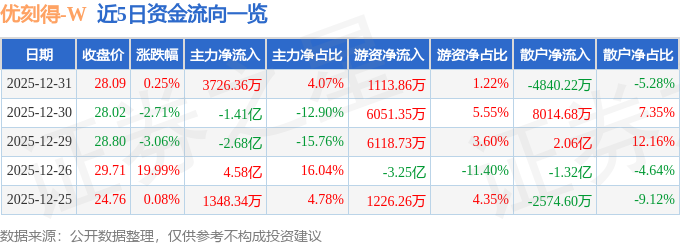 证券之星消息,截至2025年12月31日收盘,优刻得(688158)报收于28.09元,上涨0.25%,换手率7.99%,成交量32.41万手,成交额9.17亿元。