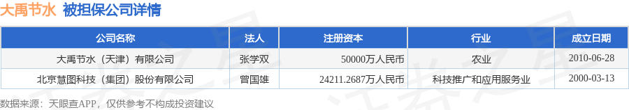 大禹节水12月30日披露2笔对外担保,被担保公司2家。对外担保明细如下表: