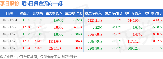 证券之星消息,截至2025年12月31日收盘,孚日股份(002083)报收于11.9元,下跌1.16%,换手率17.72%,成交量167.65万手,成交额20.43亿元。