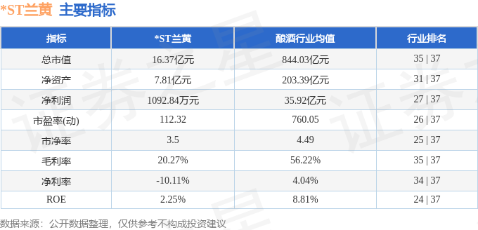 *ST兰黄2025年三季报显示,前三季度公司主营收入2.19亿元,同比上升23.35%;归母净利润1092.84万元,同比上升128.25%;扣非净利润-3797.43万元,同比下降49.81%;其中2025年第三季度,公司单季度主营收入1.23亿元,同比上升94.98%;单季度归母净利润2284.16万元,同比上升174.93%;单季度扣非净利润-2394.78万元,同比下降155.23%;负债率30.13%,投资收益312.84万元,财务费用-197.97万元,毛利率20.27%。*ST兰黄(000929)主营业务:啤酒、饮料、麦芽的生产与销售。