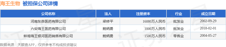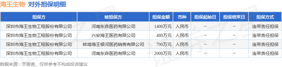 海王生物12月30日披露4笔对外担保,被担保公司3家。对外担保明细如下表: