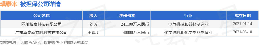 璞泰来12月30日披露2笔对外担保,被担保公司2家。对外担保明细如下表: