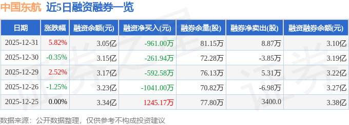 证券之星消息,截至2025年12月31日收盘,中国东航(600115)报收于6.0元,上涨5.82%,换手率0.94%,成交量160.77万手,成交额9.48亿元。