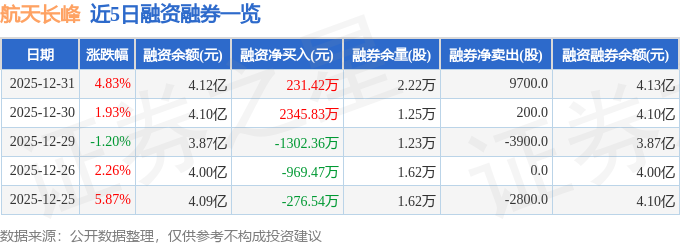 航天长峰融资融券信息显示,融资方面,当日融资买入1.21亿元,融资偿还1.18亿元,融资净买入231.42万元。融券方面,融券卖出9700.0股,融券偿还0.0股,融券余量2.22万股,融券余额46.71万元。融资融券余额4.13亿元。