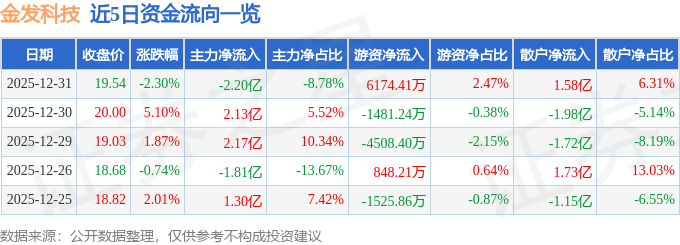 证券之星消息,截至2025年12月31日收盘,金发科技(600143)报收于19.54元,下跌2.3%,换手率4.84%,成交量127.6万手,成交额25.0亿元。
