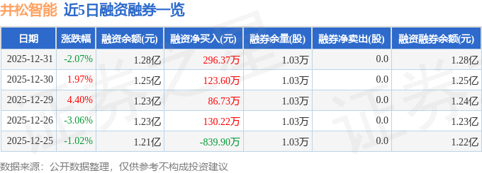井松智能融资融券信息显示,融资方面,当日融资买入1904.03万元,融资偿还1607.66万元,融资净买入296.37万元,连续3日净买入累计506.7万元。融券方面,融券卖出0.0股,融券偿还0.0股,融券余量1.03万股,融券余额30.28万元。融资融券余额1.28亿元。