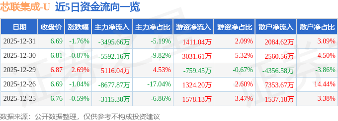 证券之星消息,截至2025年12月31日收盘,芯联集成(688469)报收于6.69元,下跌1.76%,换手率2.27%,成交量100.59万手,成交额6.74亿元。