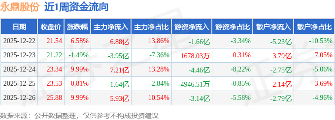 资金流向数据方面,本周永鼎股份主力资金合计净流入14.42亿元,游资资金合计净流出9.58亿元,散户资金合计净流出4.84亿元。本周资金流向一览见下表:
