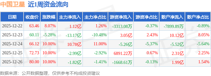 沪深股通持股方面,截止2025年12月26日收盘,中国卫星沪股通持股数为1195.46万股,占流通股比为101.0%。