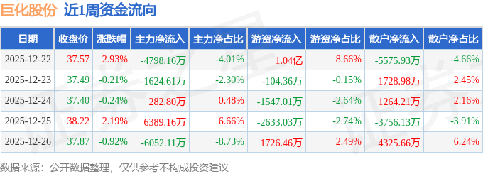资金流向数据方面,本周巨化股份主力资金合计净流出5802.92万元,游资资金合计净流入7816.14万元,散户资金合计净流出2013.22万元。本周资金流向一览见下表: