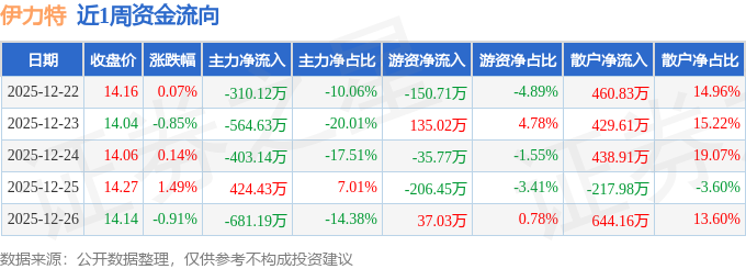 资金流向数据方面,本周伊力特主力资金合计净流出1534.65万元,游资资金合计净流出220.89万元,散户资金合计净流入1755.53万元。本周资金流向一览见下表: