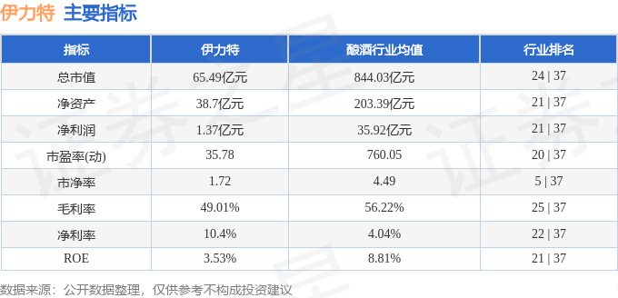 伊力特(600197)主营业务:公司是一家集白酒的生产、研发和销售合为一体的农业产业化、新型工业化白酒酿造与销售企业。 伊力特2025年三季报显示,前三季度公司主营收入12.99亿元,同比下降21.46%;归母净利润1.37亿元,同比下降43.05%;扣非净利润1.46亿元,同比下降38.7%;其中2025年第三季度,公司单季度主营收入2.29亿元,同比下降29.44%;单季度归母净利润-2529.68万元,同比下降158.52%;单季度扣非净利润-915.61万元,同比下降120.58%;负债率33.44%,投资收益223.21万元,财务费用1534.2万元,毛利率49.01%。