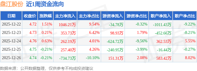 沪深股通持股方面,截止2025年12月26日收盘,盘江股份沪股通持股数为1366.19万股,占流通股比为64.0%。