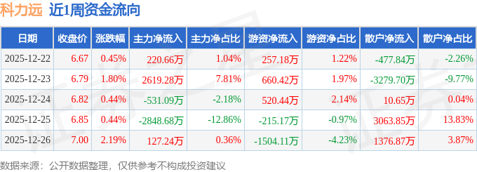 资金流向数据方面,本周科力远主力资金合计净流出412.59万元,游资资金合计净流出281.24万元,散户资金合计净流入693.83万元。本周资金流向一览见下表: