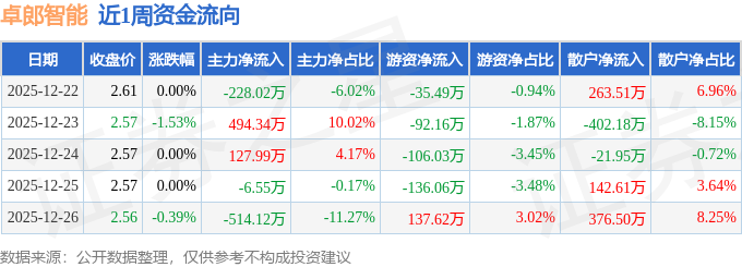资金流向数据方面,本周卓郎智能主力资金合计净流出126.36万元,游资资金合计净流出232.12万元,散户资金合计净流入358.48万元。本周资金流向一览见下表: