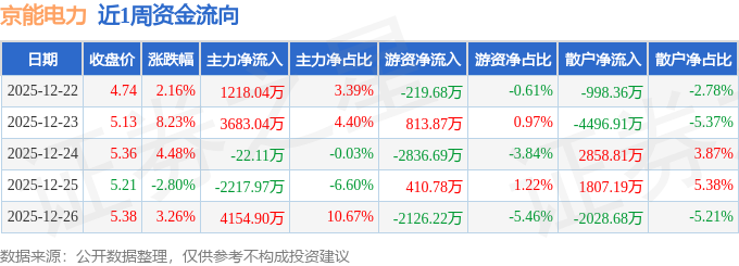 沪深股通持股方面,截止2025年12月26日收盘,京能电力沪股通持股数为6608.71万股,占流通股比为99.0%。