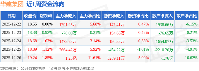 资金流向数据方面,本周华建集团主力资金合计净流入1.81亿元,游资资金合计净流入5317.29万元,散户资金合计净流出2.34亿元。本周资金流向一览见下表: