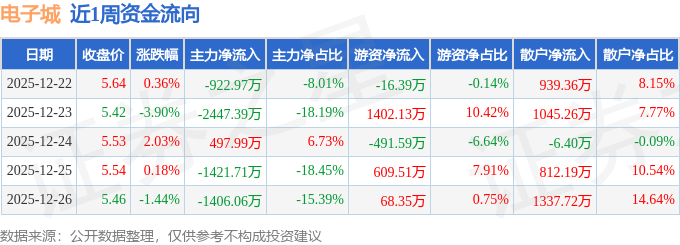 资金流向数据方面,本周电子城主力资金合计净流出5700.14万元,游资资金合计净流入1572.0万元,散户资金合计净流入4128.13万元。本周资金流向一览见下表: